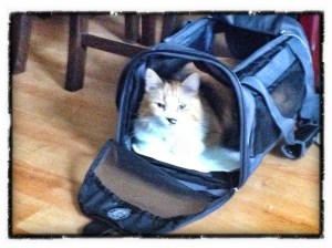 Cats are smart. I so much as opened the packages and Isabelle bolts for underneath the bed. She is immediately followed by Skinny. Only Sonni remains – she is unfazed, defiant even. Sonni has moxie and I love that about her. Today is the first day of training. I strategically place the carriers, open, across the room in the hopes that my reluctant felines will eventually give in to their curiosity. I hear that cat’s have curiosity in spades. The empty carriers would indicate otherwise.